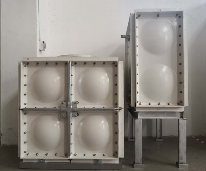 騰翔玻璃鋼水箱是用先進的沖壓設備沖壓出來的高質量玻璃鋼模塊組合而成,依據相對不同的三維結構規劃參數來決議運用不同厚度的模塊,在廠內或現場實施焊接拼裝。玻璃鋼水箱組成的四個旁邊面及頂板都能夠由玻璃鋼模塊拼裝而成,主要來介紹下水箱底板、槽鋼結構以及資料的選用,這些要素對整個水箱的形狀以及日后是否變形會有很大影響,因而要從水箱的規劃和裝置開始,要根底的穩定性及水箱全體強度。